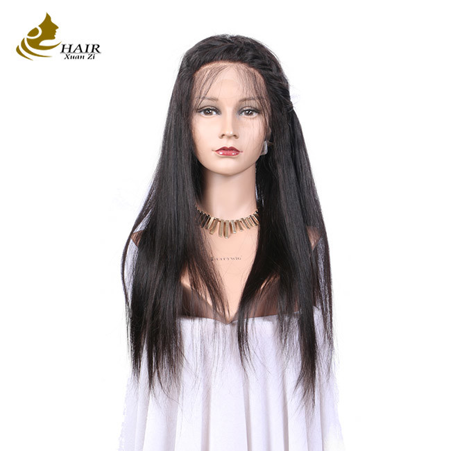 अनुकूलित मानव बाल फ्रंट फीता विग प्राकृतिक काले सीधे मानव बाल विग